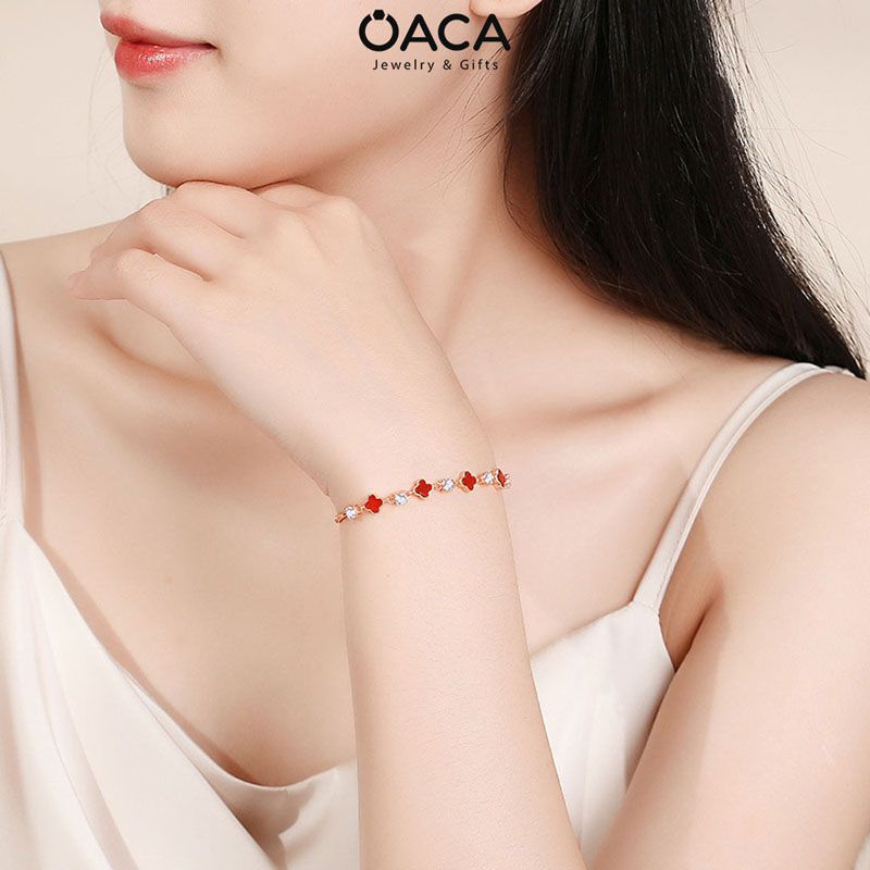 Lắc tay cỏ bốn lá Bạc mạ Vàng Hồng đá Mã Não đỏ
