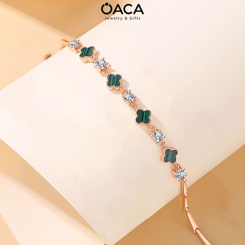 Lắc tay cỏ bốn lá Bạc mạ Vàng Hồng đá Malachite xanh